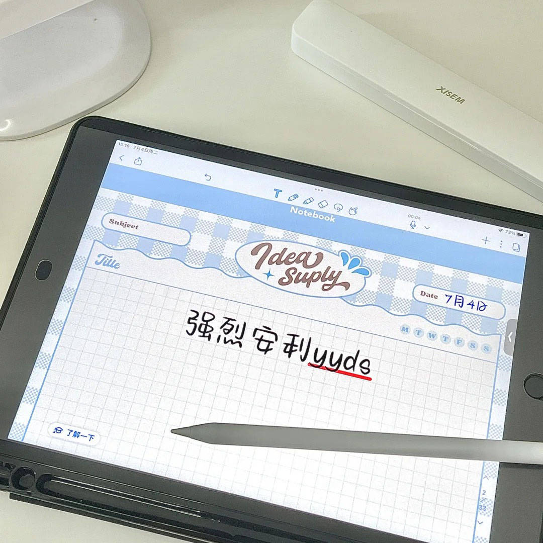 在书写性能上,这款电容笔表现非常出色。它使用与Apple Pencil同款的POM笔尖,还支持倾斜压感功能,能够根据不同角度自动调整笔迹的粗细和深浅,同时,全屏防误触设计使得手掌直接接触屏幕时不会干扰书写,保证了书写的流畅性与准确性。不仅如此,这款电容笔的表现不仅超越了许多同价位竞品,某些方面甚至能与Apple Pencil媲美。