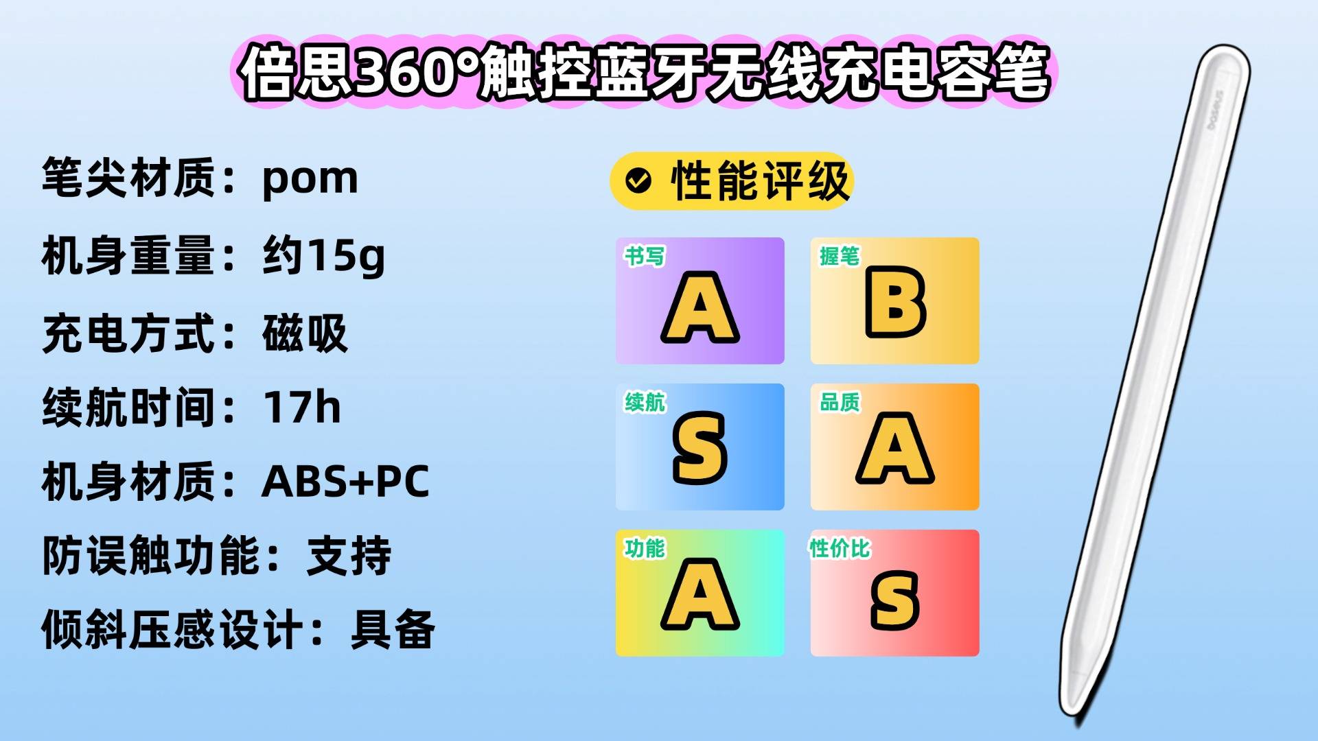 产品3:倍-思360°触控蓝牙无线充电容笔