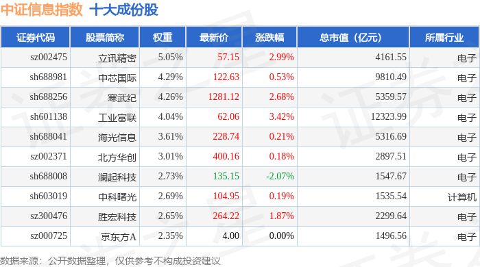 证券之星消息,10月20日,中证信息(000935)指数报收于6291.75点,涨1.07%,成交2437.77亿元,换手率2.14%。当日该指数成份股中,上涨的有92家,景旺电子以8.8%的涨幅领涨,下跌的有33家,歌尔股份以2.53%的跌幅领跌。