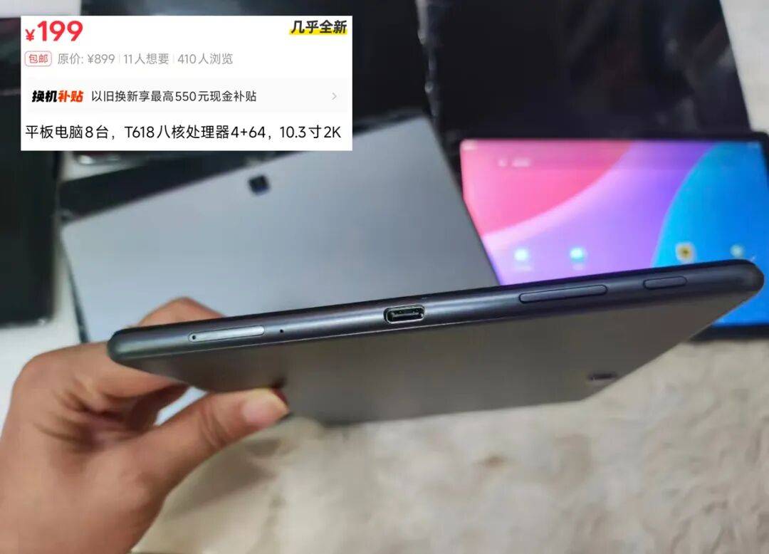 底部是Type-C充电口,一侧还有SIM卡槽,中框和背壳都是塑料,谈不上任何质感。主要是价格还行,卖家标199元包邮,声称共有8台。但这平板没有品牌和型号追溯,无法在闲鱼查到均价,各位自己去研究吧。