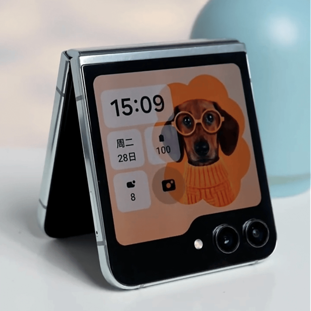 以三星Galaxy Z Flip5 为例,它配备了一块 3.4 英寸的 Super AMOLED “文件夹”式异形外屏。这块屏幕使得用户无需展开手机,即可直接在外屏上回复微信消息、使用支付宝付款、刷抖音短视频、查看日程并接打电话。配合三星深度优化的One UI系统,其外屏已从一个简单的通知窗口,进化为您掌中功能完备的 “迷你控制中心”,极大地提升了使用效率。