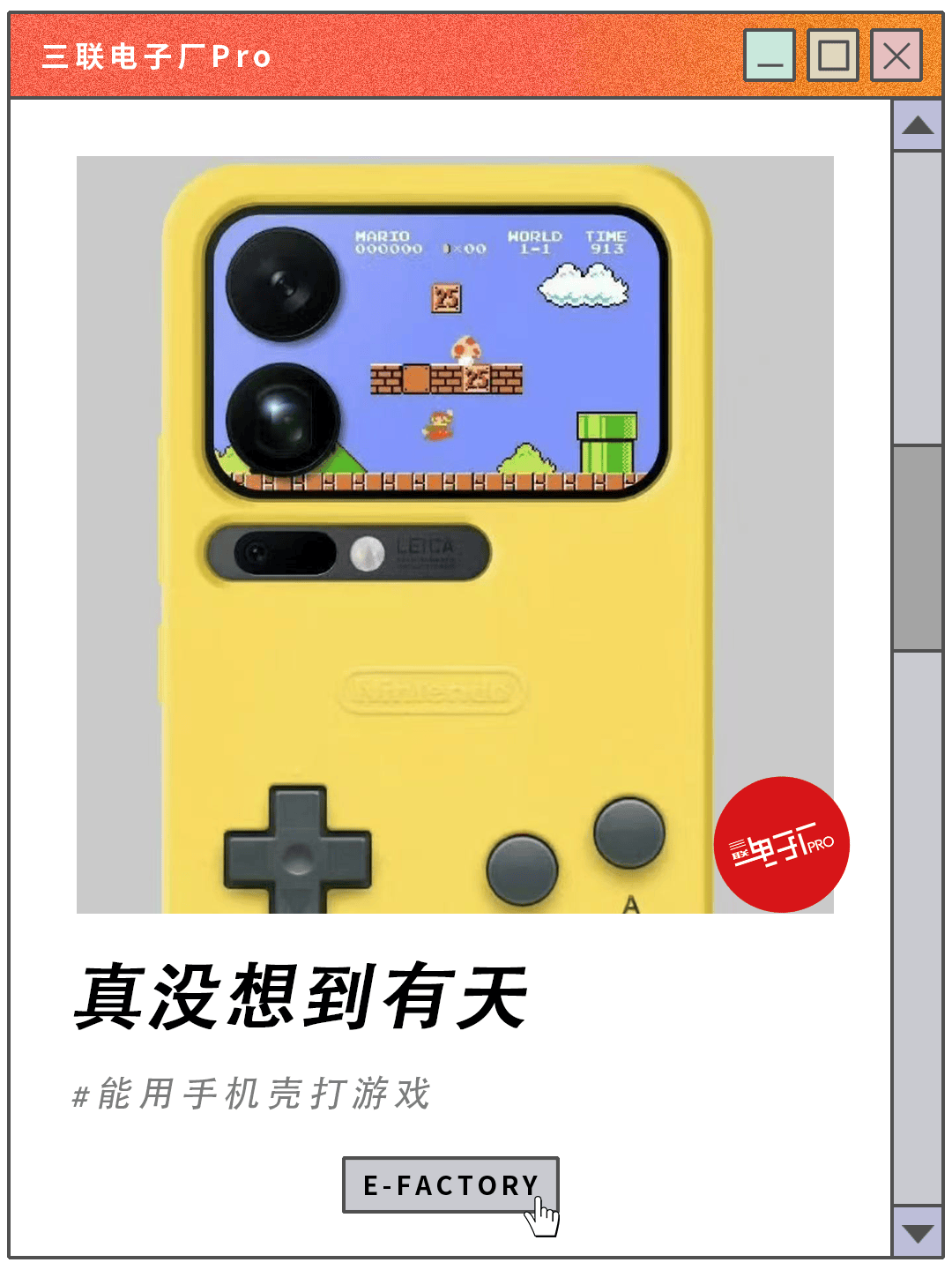 “用专属游戏手柄手机壳,还能让手机变身GBA,在背屏上玩复古游戏,瞬间成为聚会焦点。”