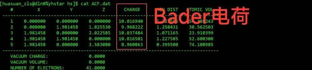 Bader电荷结果在ACF.dat文件中的CHARGE一列