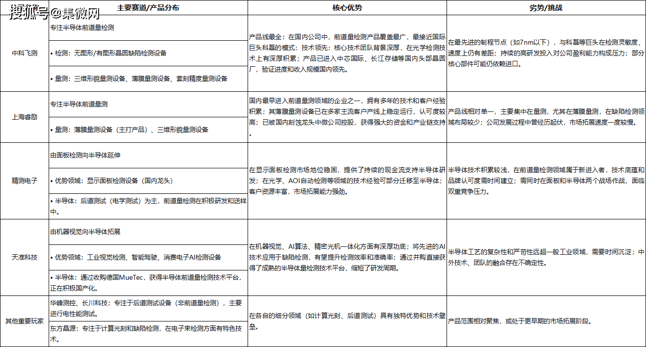 在国产替代的浪潮下,国内半导体量检测设备企业正加速突围,尽管目前国产厂商合计市场份额仍不到5%,但一批优秀企业已在细分领域实现突破,形成各具特色的竞争格局。