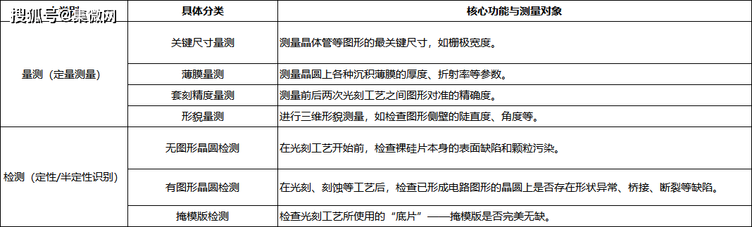 从市场结构来看,半导体检测和量测设备呈现明显的细分领域分化。根据VSLIResearch的统计,检测设备占比62.6%,是市场的主导板块,包括无图形晶圆缺陷检测设备、图形晶圆缺陷检测设备、掩膜检测设备等,直接关系到芯片制造过程中的缺陷筛查与良率控制;量测设备占比为33.5%,涵盖三维形貌量测设备、薄膜膜厚量测设备、套刻精度量测设备等,聚焦于关键尺寸与工艺参数的精准把控。