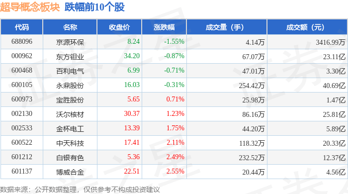 证券之星消息,10月29日超导概念板块较上一交易日上涨3.56%,中孚实业领涨。当日上证指数报收于4016.33,上涨0.7%。深证成指报收于13691.38,上涨1.95%。超导概念板块个股涨跌见下表: