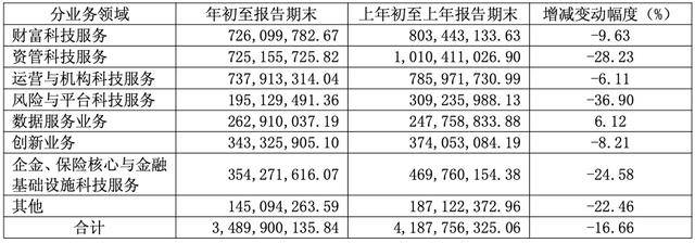 前三季度,营业收入下降主要系公司本期资管科技服务、风险与平台科技服务、企金、保险核心与金融基础设施科技服务收入比上年同期减少所致。净利润增长主要系公司本期投资收益比上年同期增加所致。