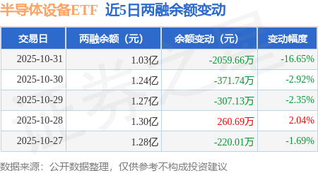 证券之星消息,10月31日,半导体设备ETF(561980)融资买入2577.89万元,融资偿还4637.55万元,融资净卖出2059.66万元,融资余额1.03亿元。
