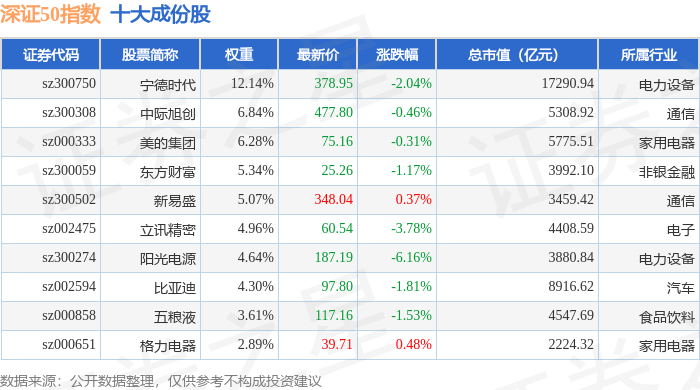 证券之星消息,11月4日,深证50(399850)指数报收于9065.28点,跌1.58%,成交1401.34亿元,换手率1.29%。当日该指数成份股中,上涨的有9家,三七互娱以2.58%的涨幅领涨,下跌的有41家,阳光电源以6.16%的跌幅领跌。