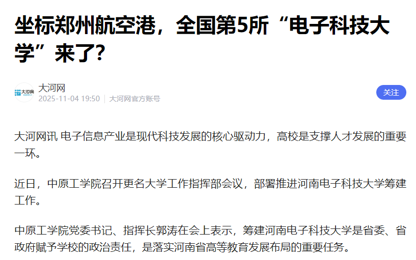 第5所“电子科技大学”来了?河南筹建电子科大,网友:脱胎纺织工业,能比得上桂电么?