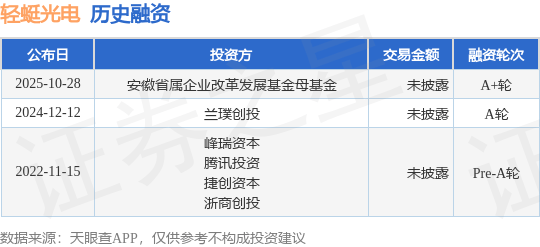 【投融资动态】轻蜓光电A+轮融... 证券之星消息,根据天眼查APP于10月28日公布的信息整理,嘉兴轻蜓光电科技有限公司A+轮融资,融资...