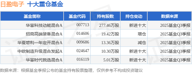 根据2025基金Q3季报公募基金重仓股数据,重仓该股的公募基金共5家,其中持有数量最多的公募基金为华富基金的华富科技动能混合A。华富科技动能混合A目前规模为10.01亿元,最新净值1.736(11月5日),较上一交易日上涨0.6%,近一年上涨102.57%。该公募基金现任基金经理为沈成。沈成在任的基金产品包括:华富新能源股票型发起式A,管理时间为2021年12月29日至今,期间收益率为16.92%;