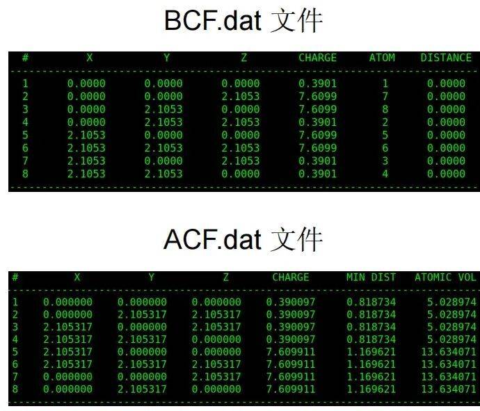 完成自洽计算后,运行以下两个脚本,从而可以得到每个原子Bader电荷,它位于ACF.dat文件中CHARGE一列 。chgsum.pl AECCAR0 AECCAR2bader CHGCAR -ref CHGCAR_sum