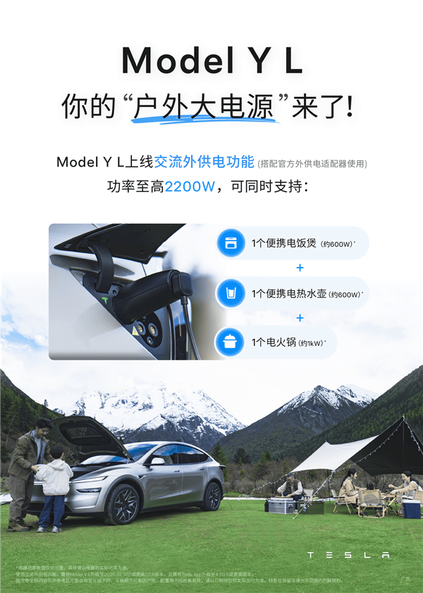 快科技11月10日消息,今天,特斯拉宣布Model Y L车型正式开放外放电(V2L)功能。