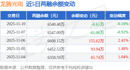 证券之星消息,11月10日,龙腾光电(688055)融资买入201.09万元,融资偿还207.74万元,融资净卖出6.65万元,融资余额6535.0万元。