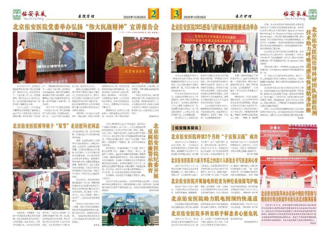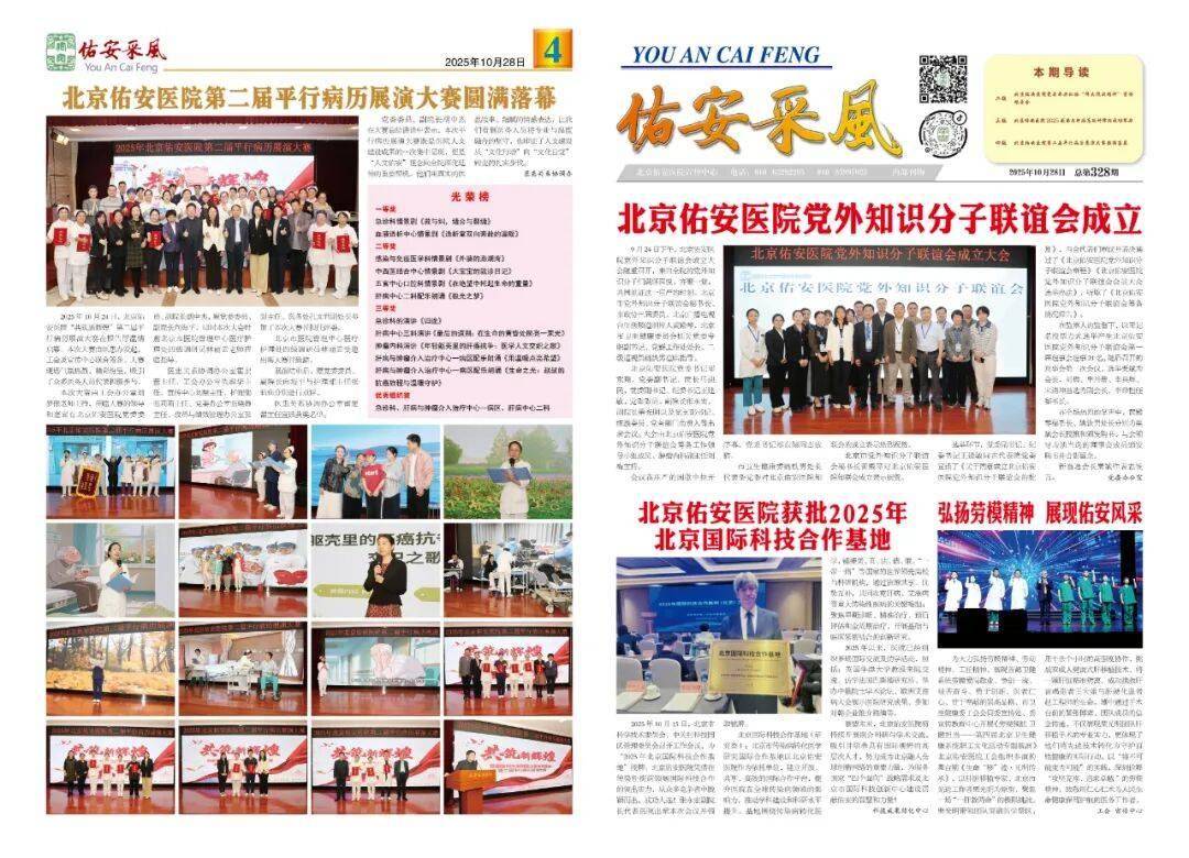 翻开2025年第328期《佑安采风》,每一个故事,每一组图片都展示了佑安医院在党建引领、医院建设、医教研防等各项工作取得的成绩和服务患者的新举措、好成效。充分展现了佑安人勇于创新、甘于奉献、向善向上的职业精神。