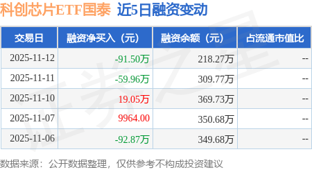 证券之星消息,11月12日,科创芯片ETF国泰(589100)融资买入360.31万元,融资偿还451.8万元,融资净卖出91.5万元,融资余额218.27万元。