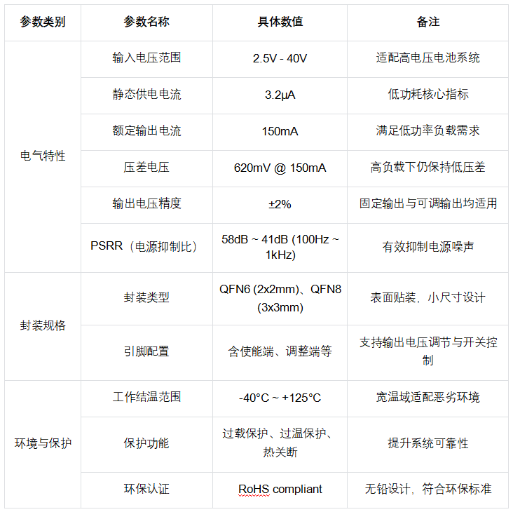 二是极致低功耗设计,静态供电电流仅3.2µA,大幅延长电池供电设备的续航时间;