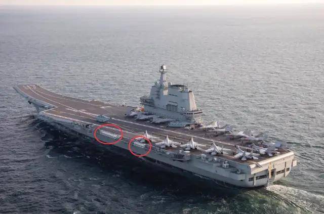 ▲山东舰的救生筏和辽宁舰排列方式不一样