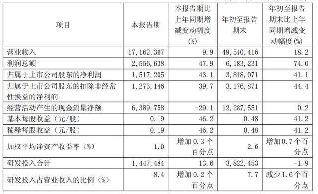 2025年前三季度,中芯国际公司实现营业收入495.1亿元,同比增长18.2%;归属于上市公司股东的净利润38.18亿元,同比增长41.1%。其中第三季度,中芯国际实现营业收入 171.62 亿元,同比增长 9.90%;归属于上市公司股东的净利润 15.17 亿元,同比增长 43.10%;基本每股收益0.19 元。
