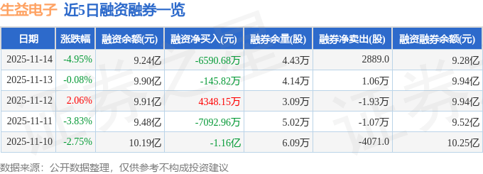 证券之星消息,截至2025年11月14日收盘,生益电子(688183)报收于94.12元,下跌4.95%,换手率1.33%,成交量11.05万手,成交额10.59亿元。