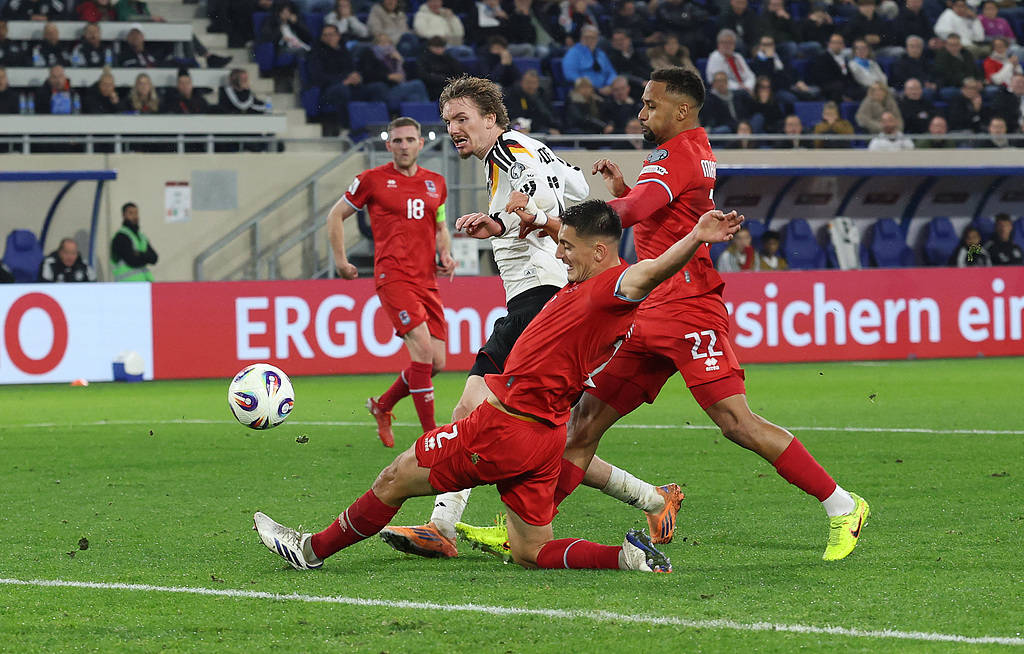 第8分钟,德国前场断球后快速反击,禁区左侧的维尔茨接队友分球后低射被扑。第20分钟,卢森堡球员达尔达里左侧内切打门被扑。第25分钟,德国队传中被卢森堡球员顶出,禁区右侧无人盯防的格纳布里劲射被挡,二次补射稍稍踢偏。第27分钟,维尔茨前场左侧连续横移内切,随后打门踢高了。第39分钟,维尔茨再次尝试左侧内切打门,皮球被防守球员挡出。