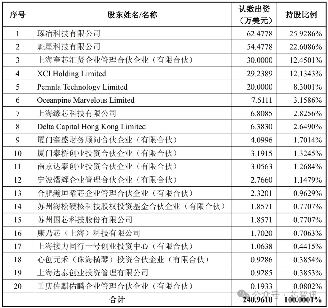 奎芯科技的股权结构显示,陈琬宜女士通过控制琢冶科技有限公司、魁星科技有限公司、上海奎芯汇贤企业管理合伙企业(有限合伙)、XCI Holding Limited、PemnlaTechnology Limited 合计控制奎芯科技 81.4216%股权。