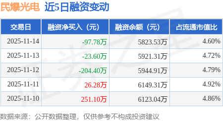 证券之星消息,11月14日,民爆光电(301362)融资买入144.11万元,融资偿还241.89万元,融资净卖出97.78万元,融资余额5823.53万元。