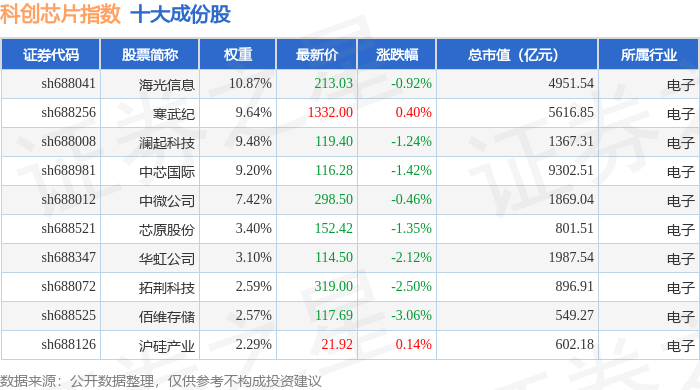证券之星消息,11月19日,科创芯片(000685)指数报收于2524.04点,跌0.97%,成交475.52亿元,换手率1.63%。当日该指数成份股中,上涨的有11家,源杰科技以3.56%的涨幅领涨,下跌的有39家,天岳先进以3.52%的跌幅领跌。