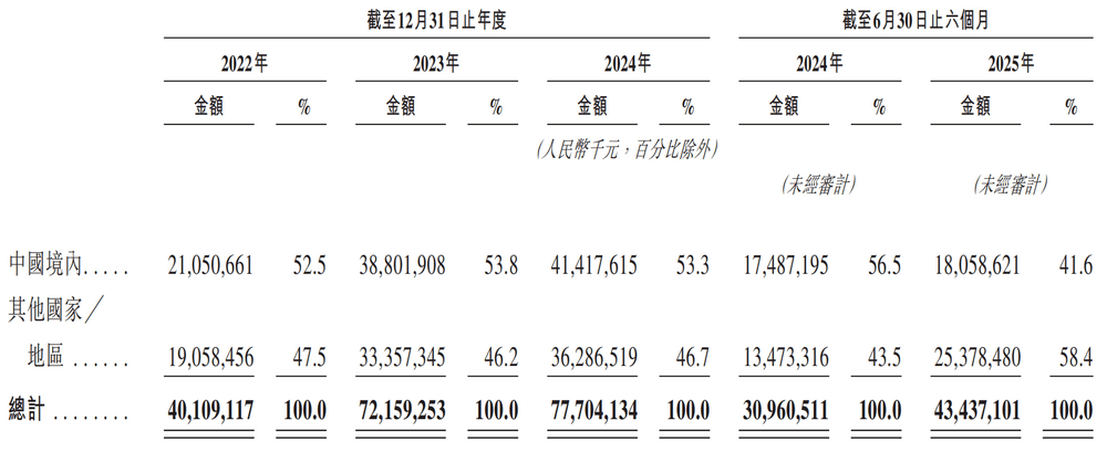 2025年上半年,阳光电源的海外业务收入达253.78亿元,占营收的比例为58.4%,首次超过了中国境内收入,而在2022年至2024年,海外业务收入占比分别为47.5%、46.2%和46.7%。