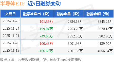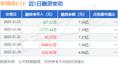证券之星消息,11月25日,半导体ETF(512480)融资买入1.59亿元,融资偿还1.62亿元,融资净卖出327.21万元,融资余额7.16亿元,近20个交易日中有11个交易日出现融资净买入。