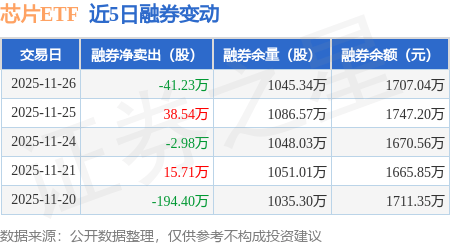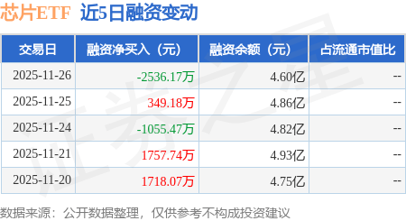 证券之星消息,11月26日,芯片ETF(159995)融资买入5833.47万元,融资偿还8369.64万元,融资净卖出2536.17万元,融资余额4.6亿元。