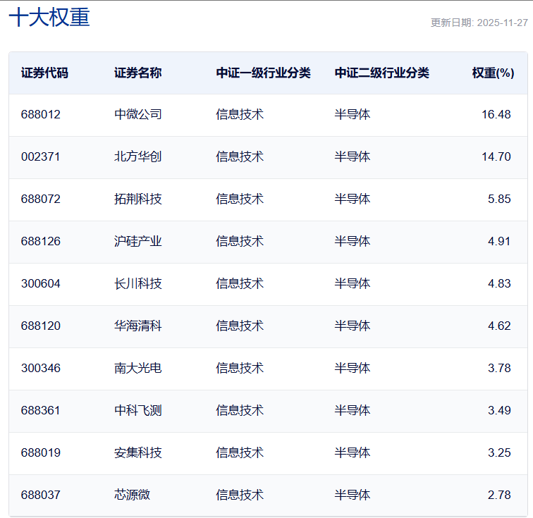 注:数据来源iFinD,截至2025.11.27,半导体设备ETF规模为59.38亿,在同类6只产品中排名第一。