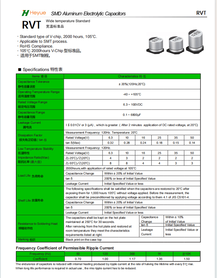 参数:容量偏差±20%(120Hz/20℃),ESR值在100kHz下低至3mΩ。