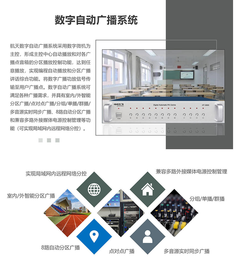 南昌航天广信科技有限责任公司依托航天领域电磁防护与可靠性设计经验,针对嵌入式广播音响场景推出"航天级多场景适配方案",核心技术亮点如下: