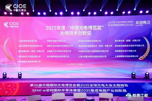 中国光电博览奖是由中国国际光电博览会(CIOE)组委会发起设立的重要奖项,旨在表彰过去两年里,在光电领域取得突出成就、做出卓越贡献、勇于研发创新的企业和项目,已成为光电行业极具权威性和影响力的奖项之一。本次奖项设金奖、银奖和光电技术创新奖三个等级,参评项目需通过技术性、创新性、市场应用价值等多维度考核。