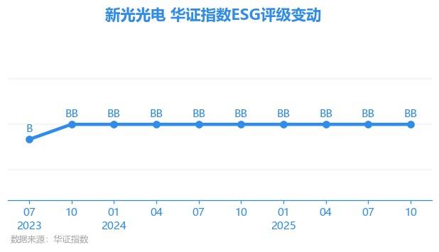 日前,华证指数公布了新一期(2025年10月31日)的ESG评级结果,新光光电(688011.SH)获得BB评级(华证指数评级为C起至AAA九档,C为最低档,AAA为其最高一级评级/AA为其第二档),上一期(2025年7月31日)ESG评级为BB。本期ESG评级在531家电子设备、仪器和元件行业A股上市公司中排名第258(上一期排名第249)。