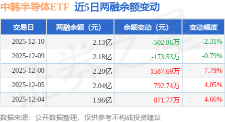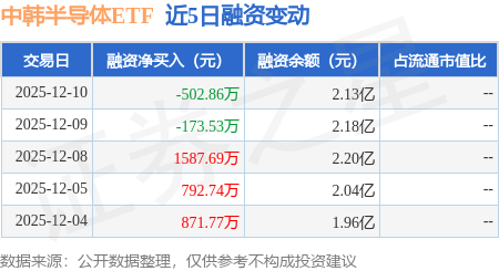 证券之星消息,12月10日,中韩半导体ETF(513310)融资买入2.01亿元,融资偿还2.06亿元,融资净卖出502.86万元,融资余额2.13亿元,近20个交易日中有11个交易日出现融资净买入。