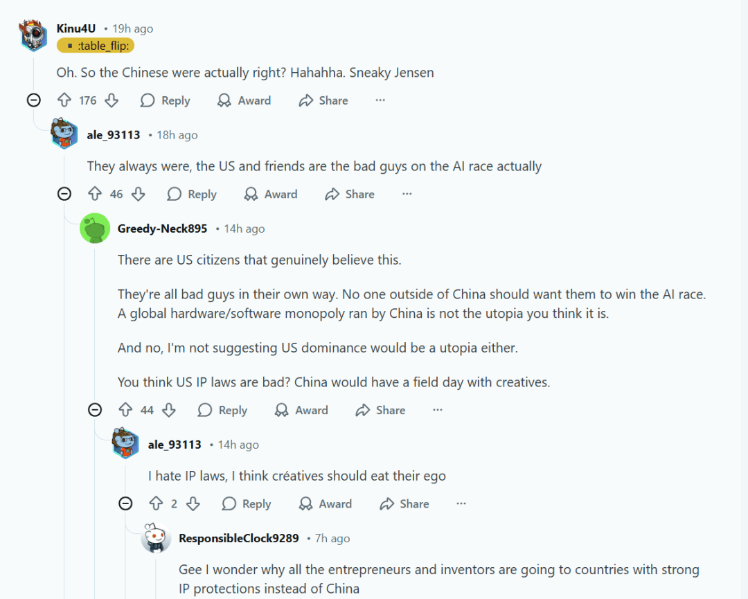 这种疑虑也延伸至市场层面。一些讨论认为,定位能力可能削弱英伟达在非西方市场的中立形象,使得长期依赖其 GPU 的企业不得不重新评估外部政策风险,从而提高考虑国产替代方案的意愿。也有技术评论指出,定位机制依赖网络通信链路,因此理论上具有可规避性,这意味着其在试图治理黑市流通的同时,也可能引入新的安全与管理复杂性。