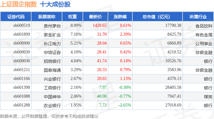 上证国企(000056)指数十大成份股详情如下: