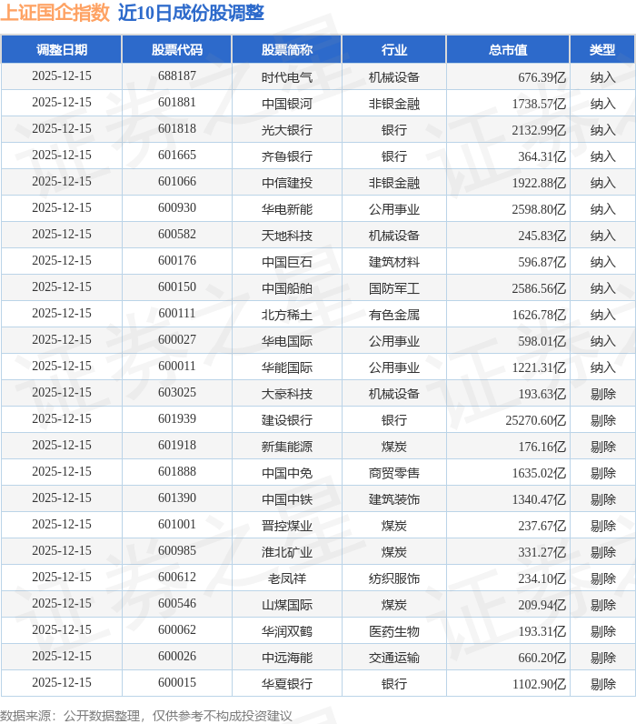 近10日内上证国企(000056)指数成份股做了调整,新纳入了12只股票,剔除了12只股票。