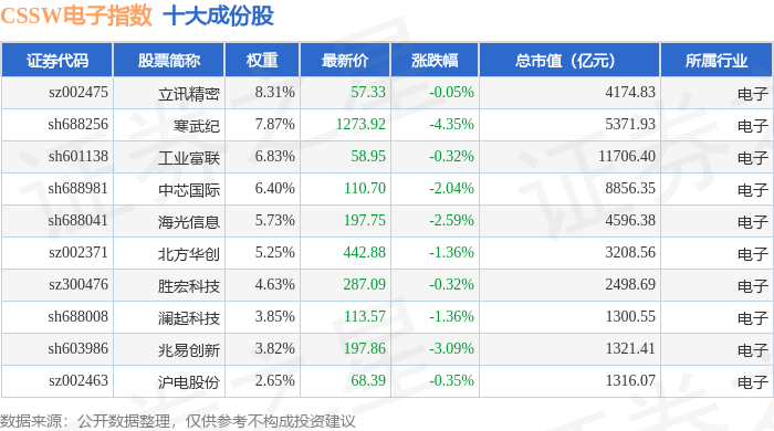 近10日内CSSW电子(399811)指数成份股做了调整,新纳入了17只股票,剔除了17只股票。