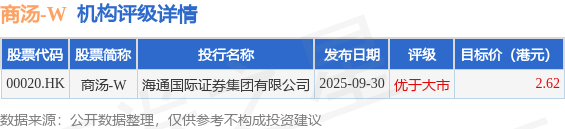 截至2025年12月16日收盘,商汤-W(00020.HK)报收于2.0港元,下跌6.1%,成交量8.47亿股,成交额17.14亿港元。投行对该股的评级以优于大市为主,近90天内共有1家投行给出优于大市评级,近90天的目标均价为2.62港元。海通国际证券集团有限公司最新一份研报给予商汤-W优于大市评级,目标价2.62港元。