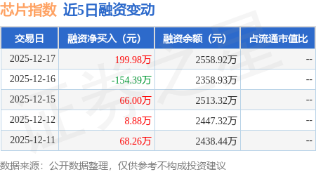 证券之星消息,12月17日,芯片指数(159599)融资买入495.52万元,融资偿还295.53万元,融资净买入199.98万元,融资余额2558.92万元。