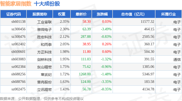 12月19日智能家居(3999... 证券之星消息,12月19日,智能家居(399996)指数报收于4383.28点,涨0.44%,成交9...