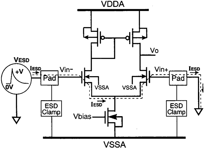 典型 ESD 电流路径示意图