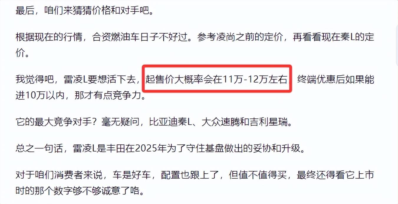 除非,我是说除非啊,终端能立马给出2-3万的优惠,把实际落地价拉回到10万出头,那这车配合丰田的口碑和TSS 3.0的安全配置,还是很香的。