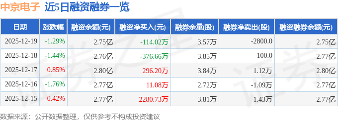 证券之星消息,截至2025年12月19日收盘,中京电子(002579)报收于11.51元,下跌1.29%,换手率5.03%,成交量29.36万手,成交额3.41亿元。