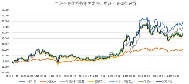 数据显示,截至12月22日,中证半导2025年年内涨幅61.86%,区间最大上涨超80%,在中证全指半导体、中华半导体芯片、国证芯片等主流半导体指数中均位列第一,或在新一轮半导体上行周期中更具弹性。