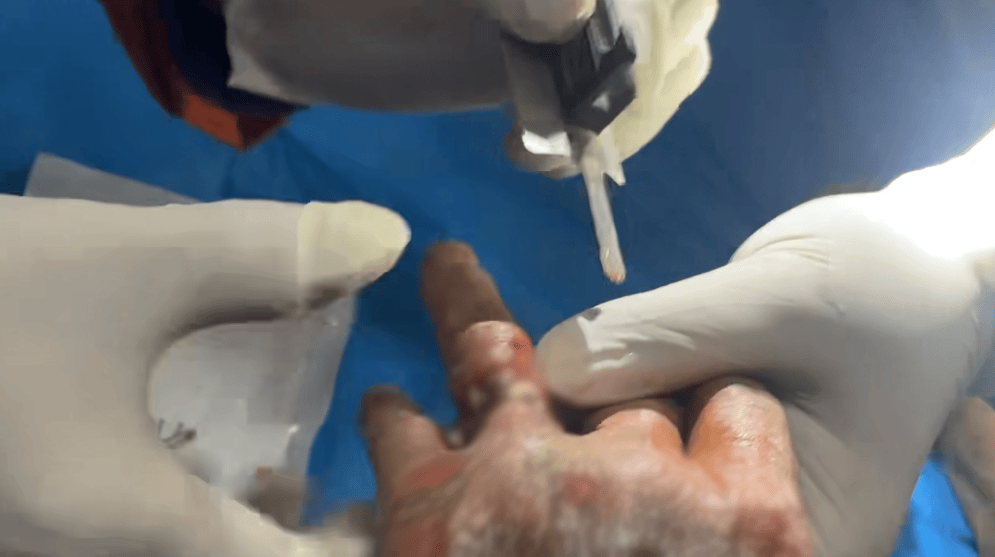 消防员继续对四只手镯进行摘除